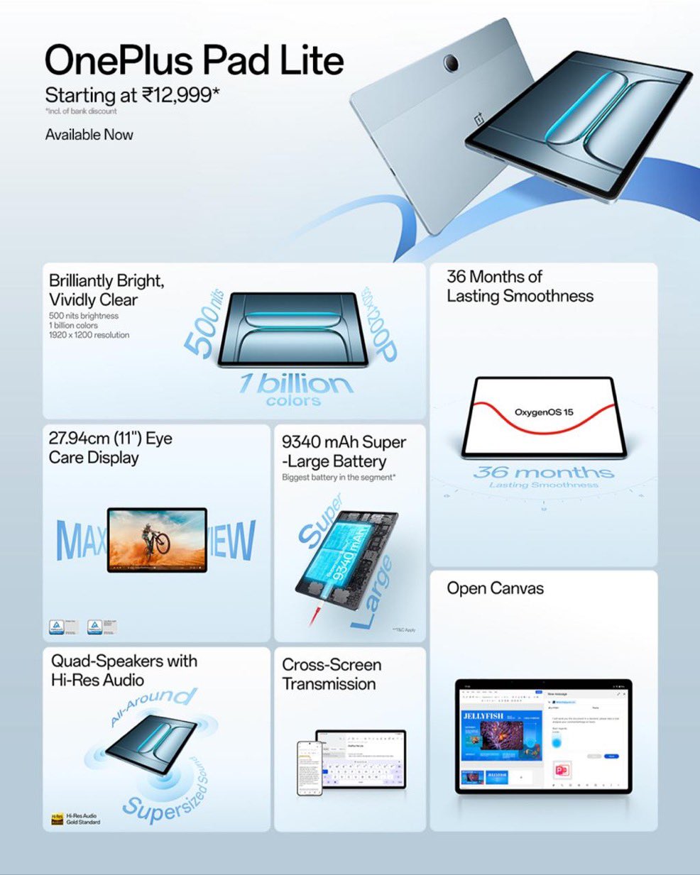 OnePlus Pad Lite का नया धमाका भारत में हुआ नया टैबलेट लॉन्च 23 जुलाई 2025 को हुआ लॉन्च कीमत में भारी छूट मात्र ₹12999